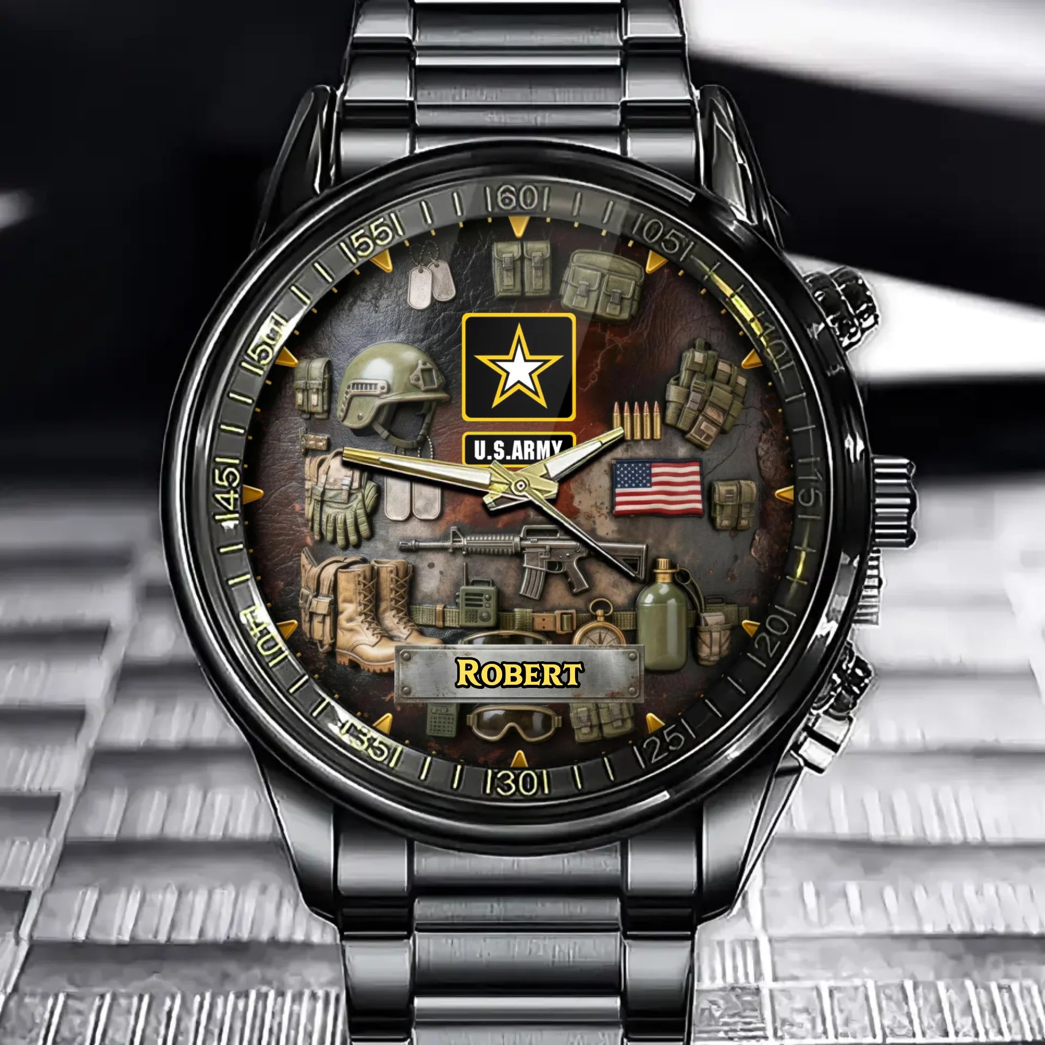 Custom Military-Themed Personalized Watch With Adjustable Branch Design