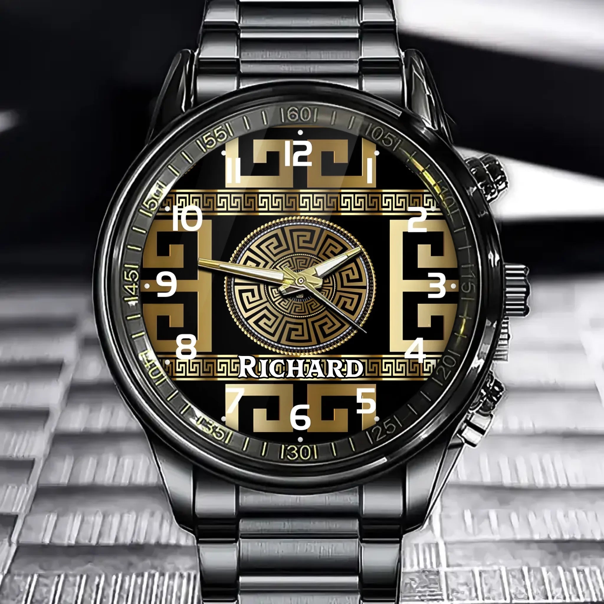 Eternal Greek Key Elegance - Personalized Geometric Artistry Watch with Custom Name