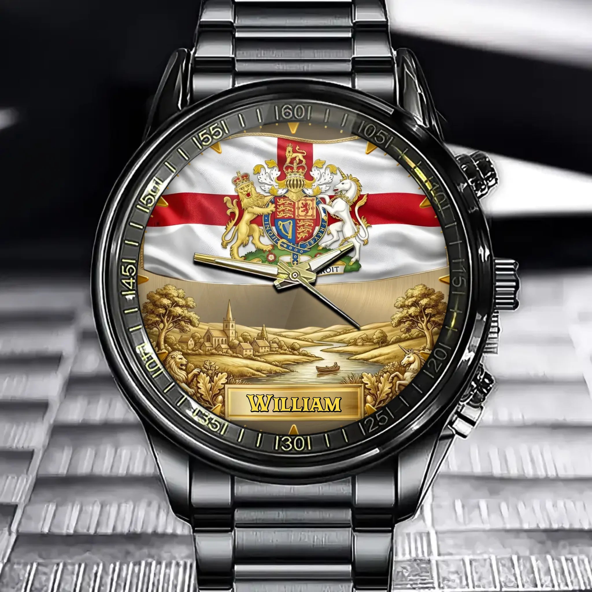 Personalized England Coat Of Arms Watch - Custom Engraving For National Pride
