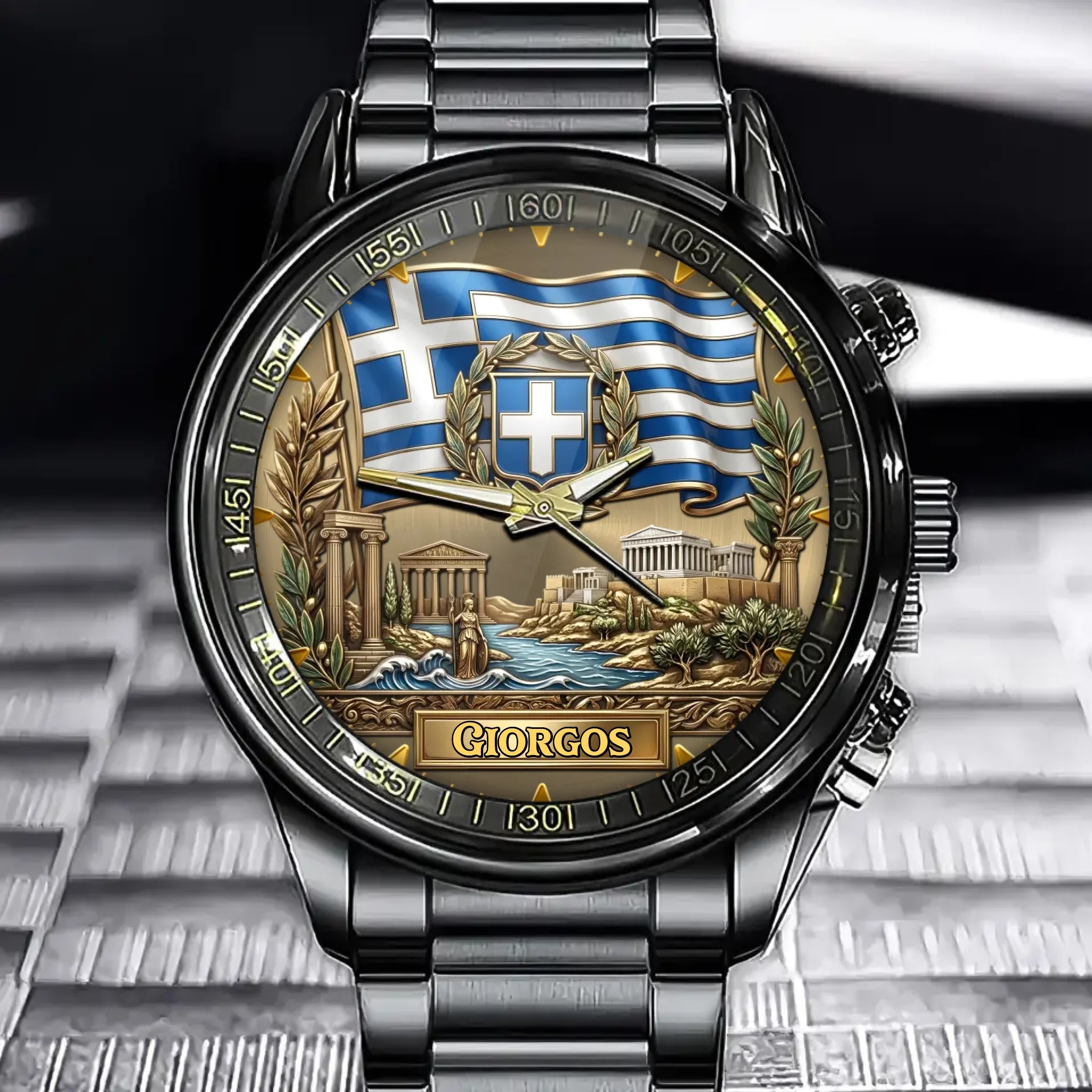 Personalized Greece Heritage Watch – Custom Name With Flag and Iconic Landmarks