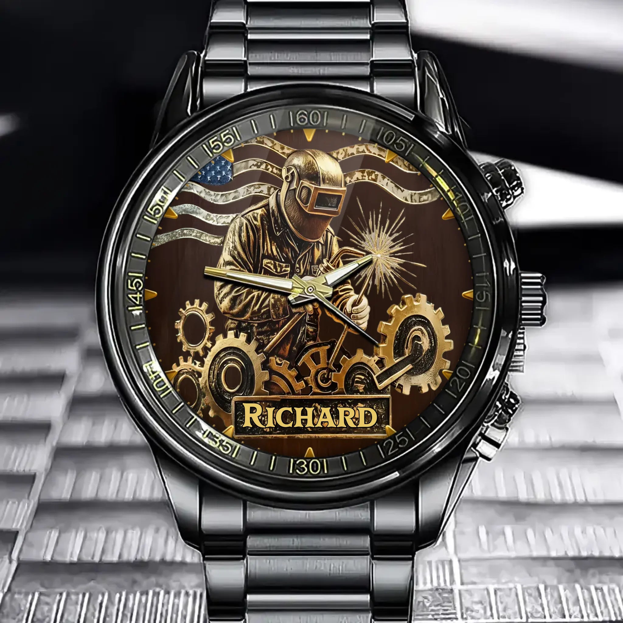 Personalized Hardcore Welder Watch – Gritty Worksite Design Featuring Custom Name