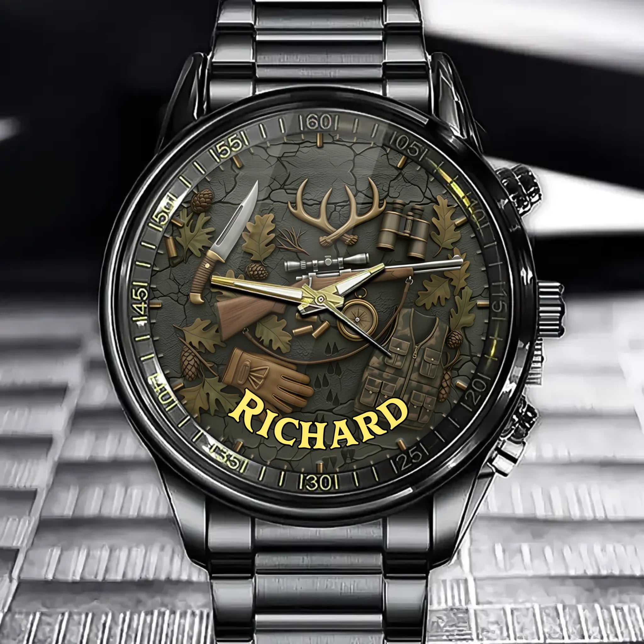 Personalized Hunting Theme Watch - Custom Rifle, Antlers & Hunting Gear Design for Hunting Enthusiasts