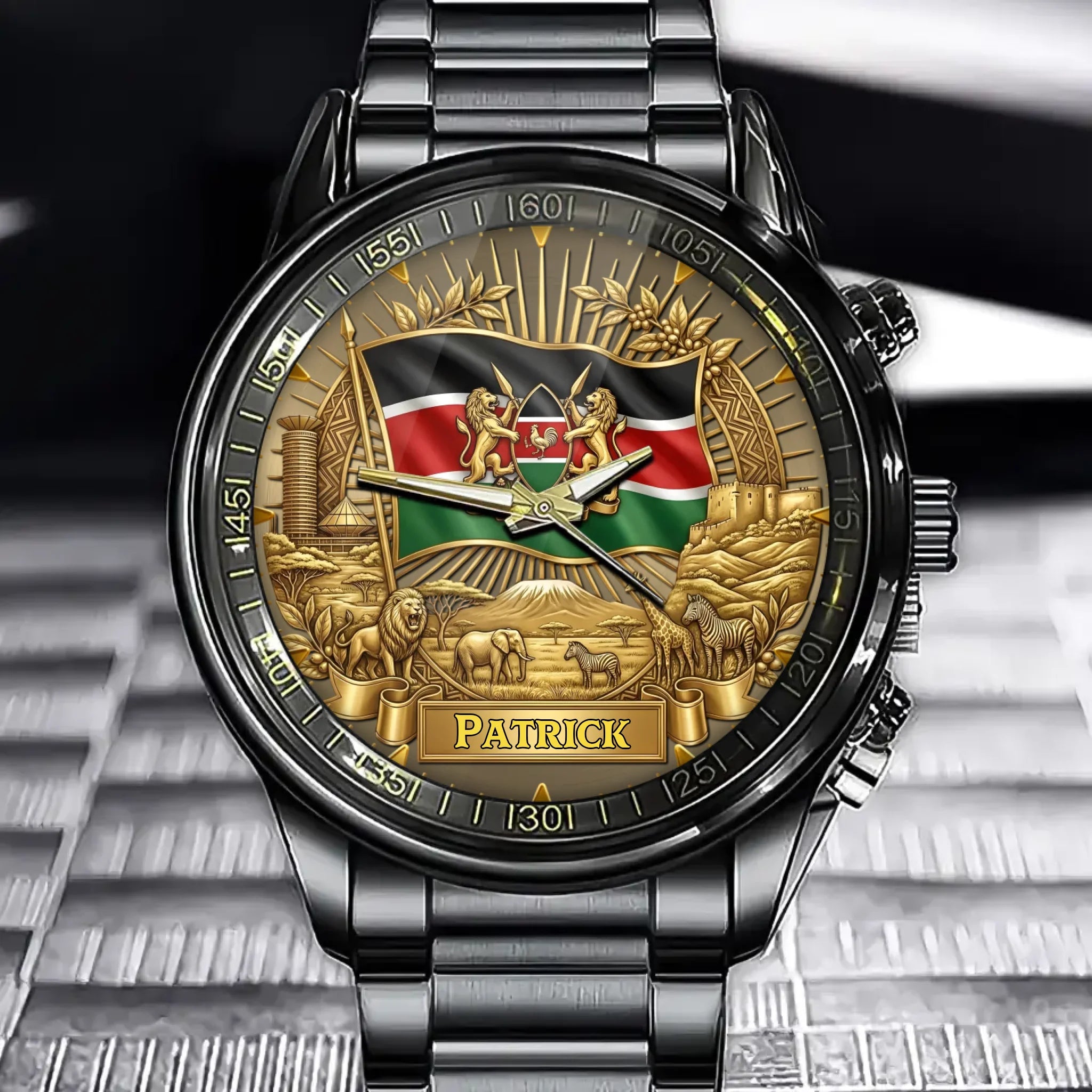 Personalized Kenya Coat Of Arms Watch – Custom Name For National Pride
