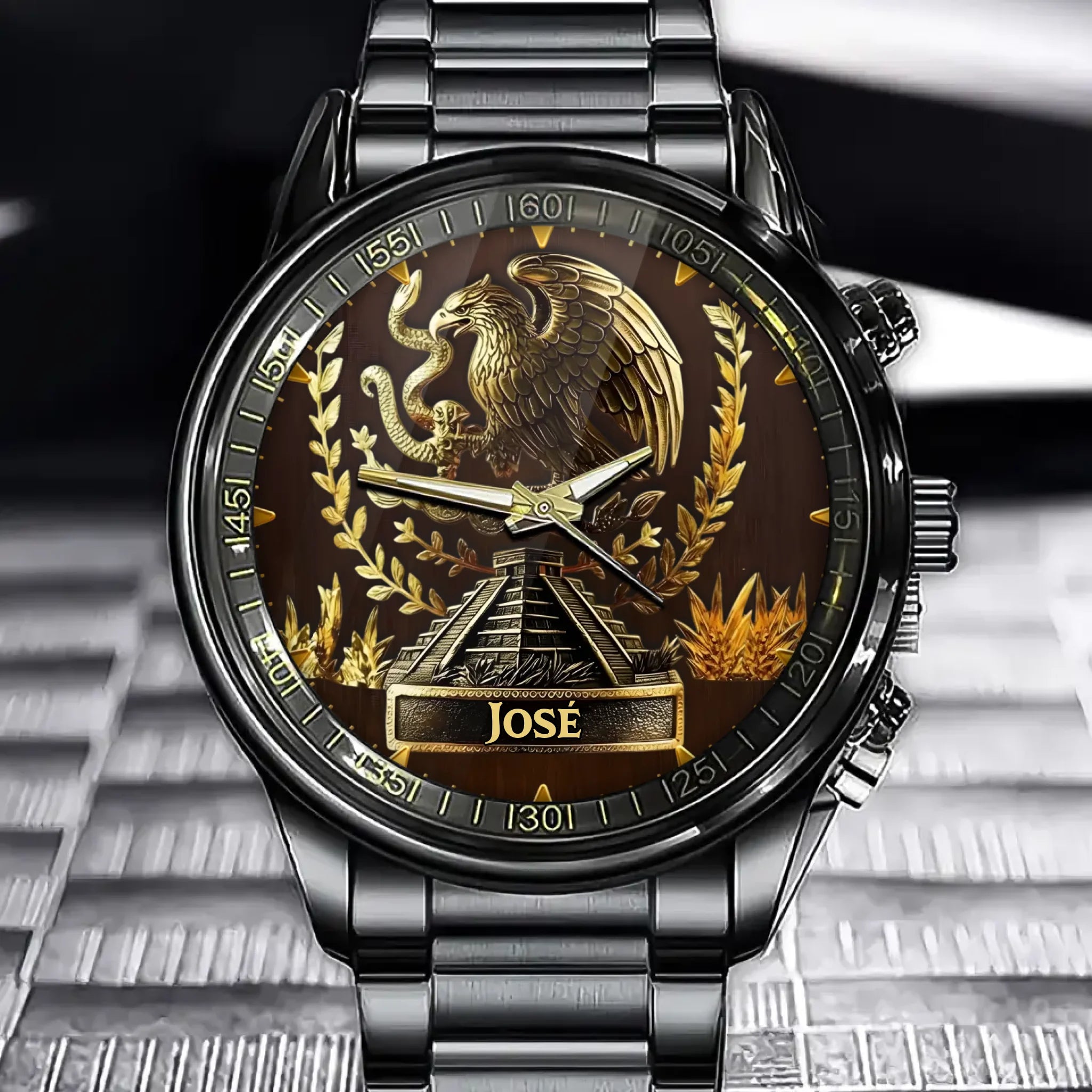 Reloj Personalizado Con Pirámide Del Águila Mexicana - Esfera Con Emblema Y Nombre Personalizado