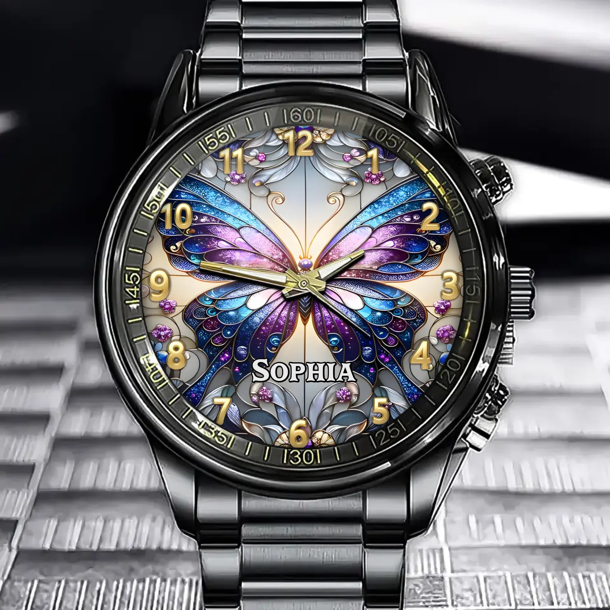 Celestial Butterfly Watch - Custom Name Crystal Art Watch in Royal Blue & Purple