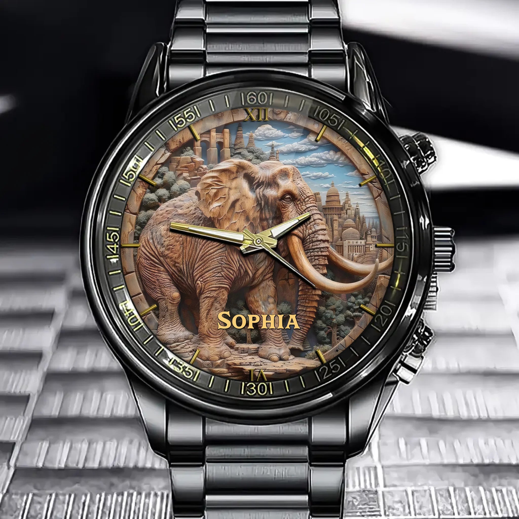 Custom Majestic Elephant Watch - Personalized Name in the Heart of Nature's Masterpiece