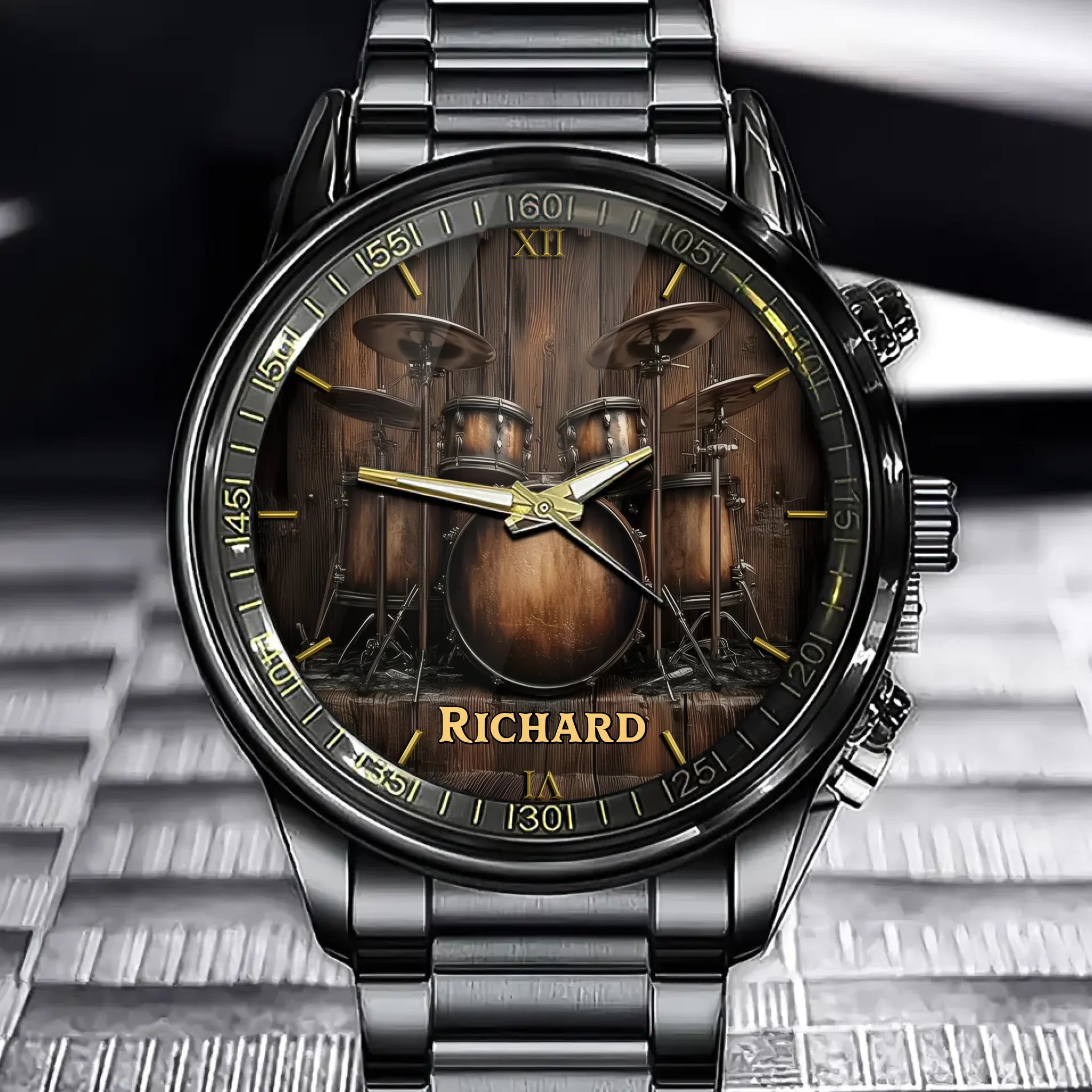 Personalized Rustic Drum Set Watch - Add Your Name to the Heartbeat of Music