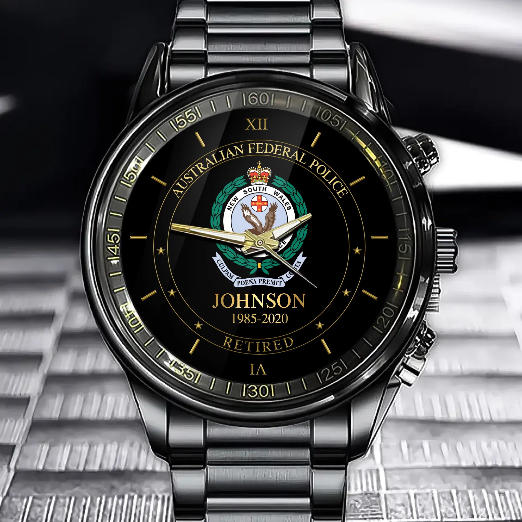 Montre personnalisée avec nom et heure du logo de la police australienne