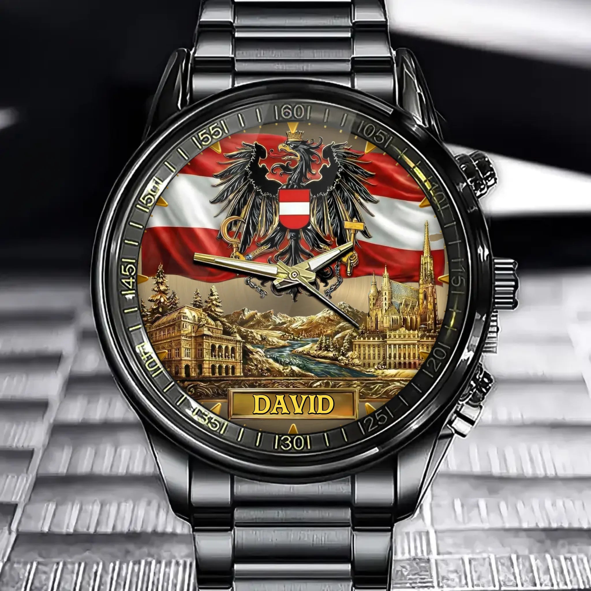 Personalized Austrian Coat of Arms Watch - Custom Engraving for National Pride