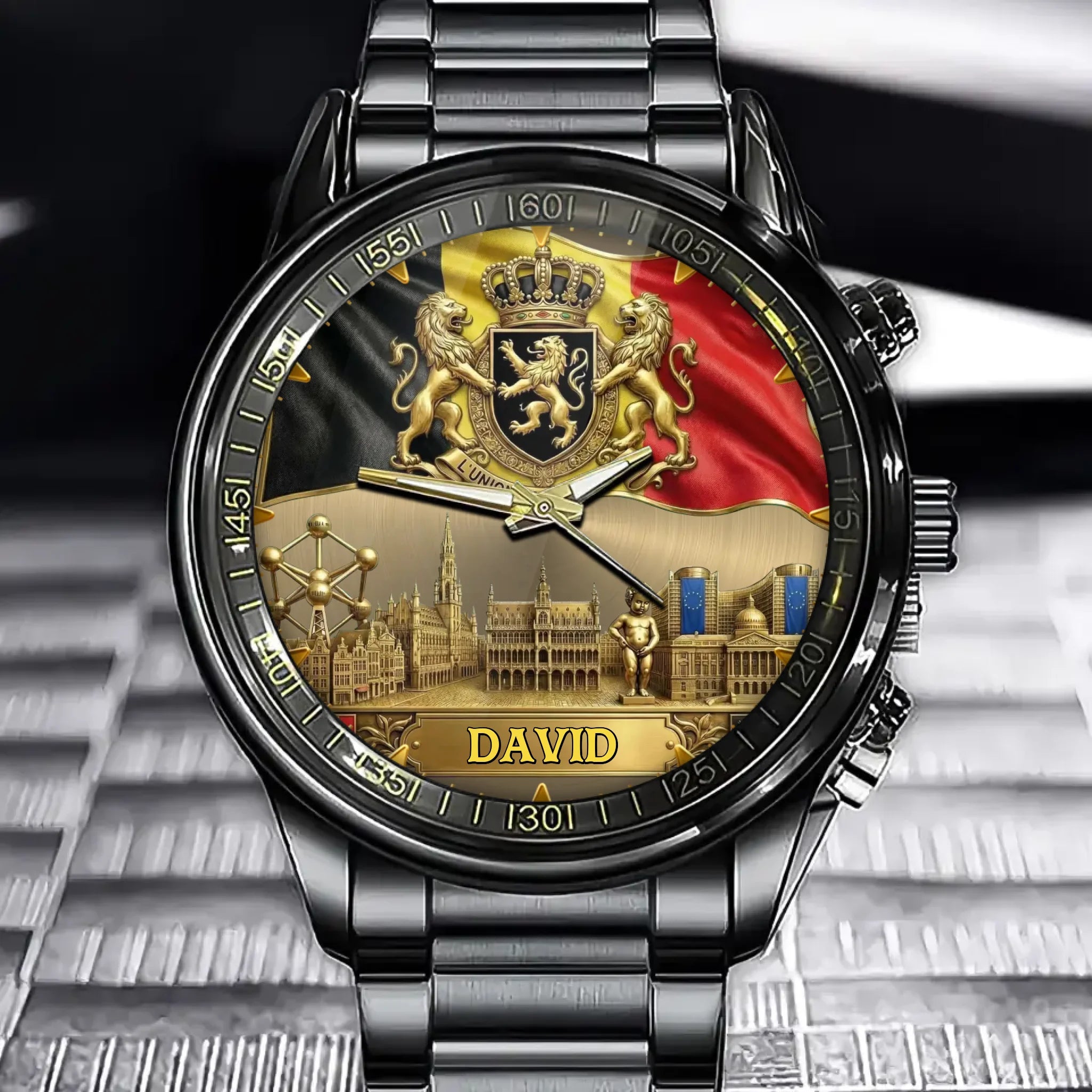 Personalized Belgian Coat of Arms Watch - Custom Engraving for National Pride