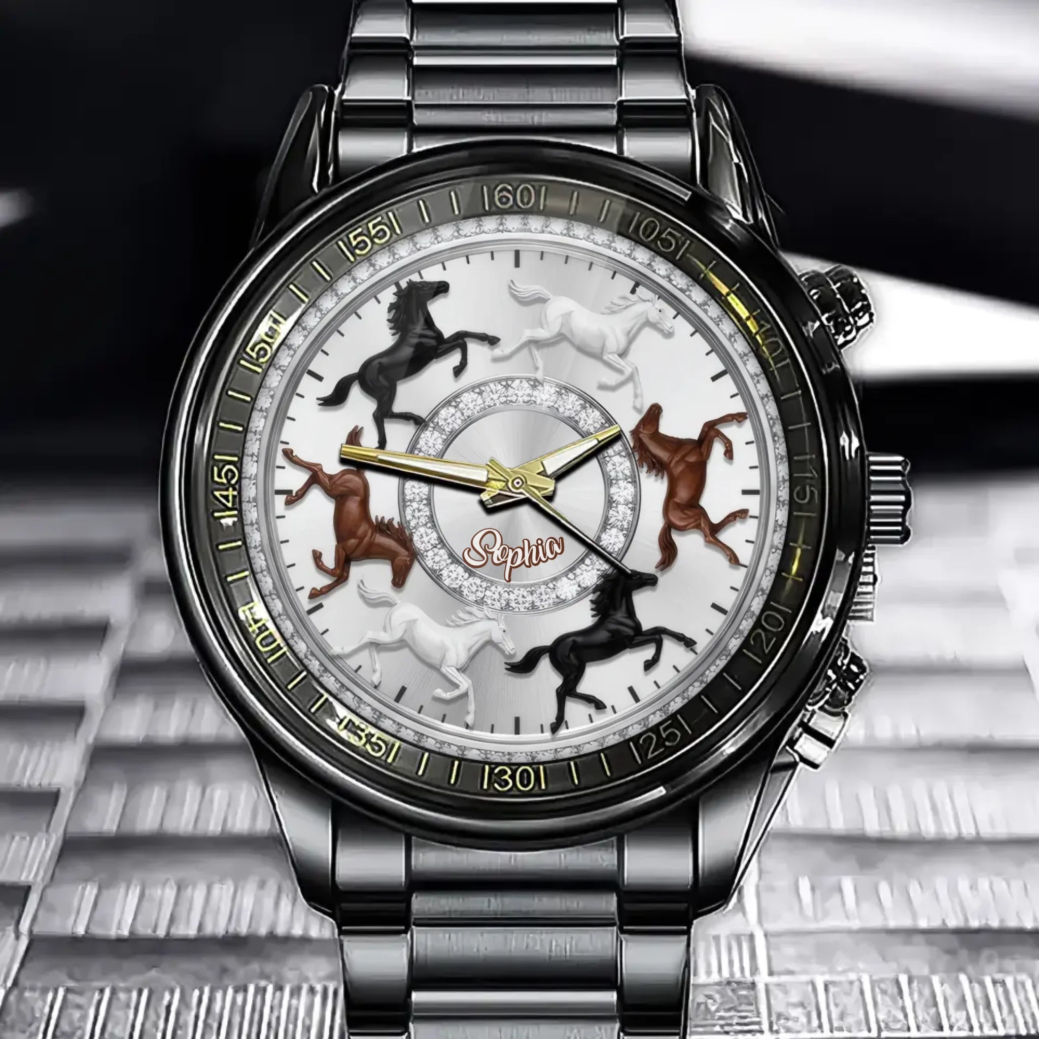 Personalized Galloping Horses Watch – Unique Gift for Horse Lovers