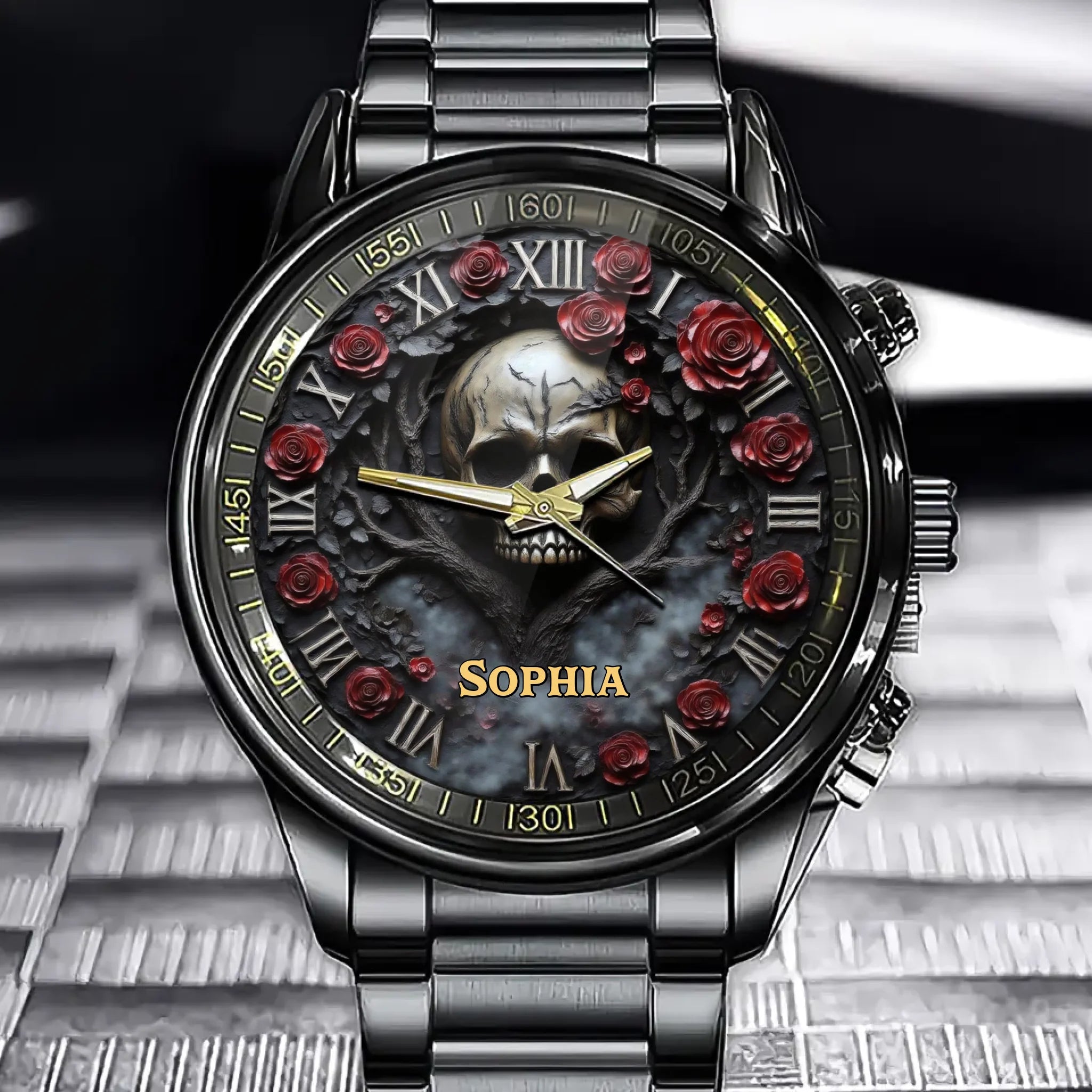 Personalized Gothic Rose Watch with Your Name - Romance in Every Hour