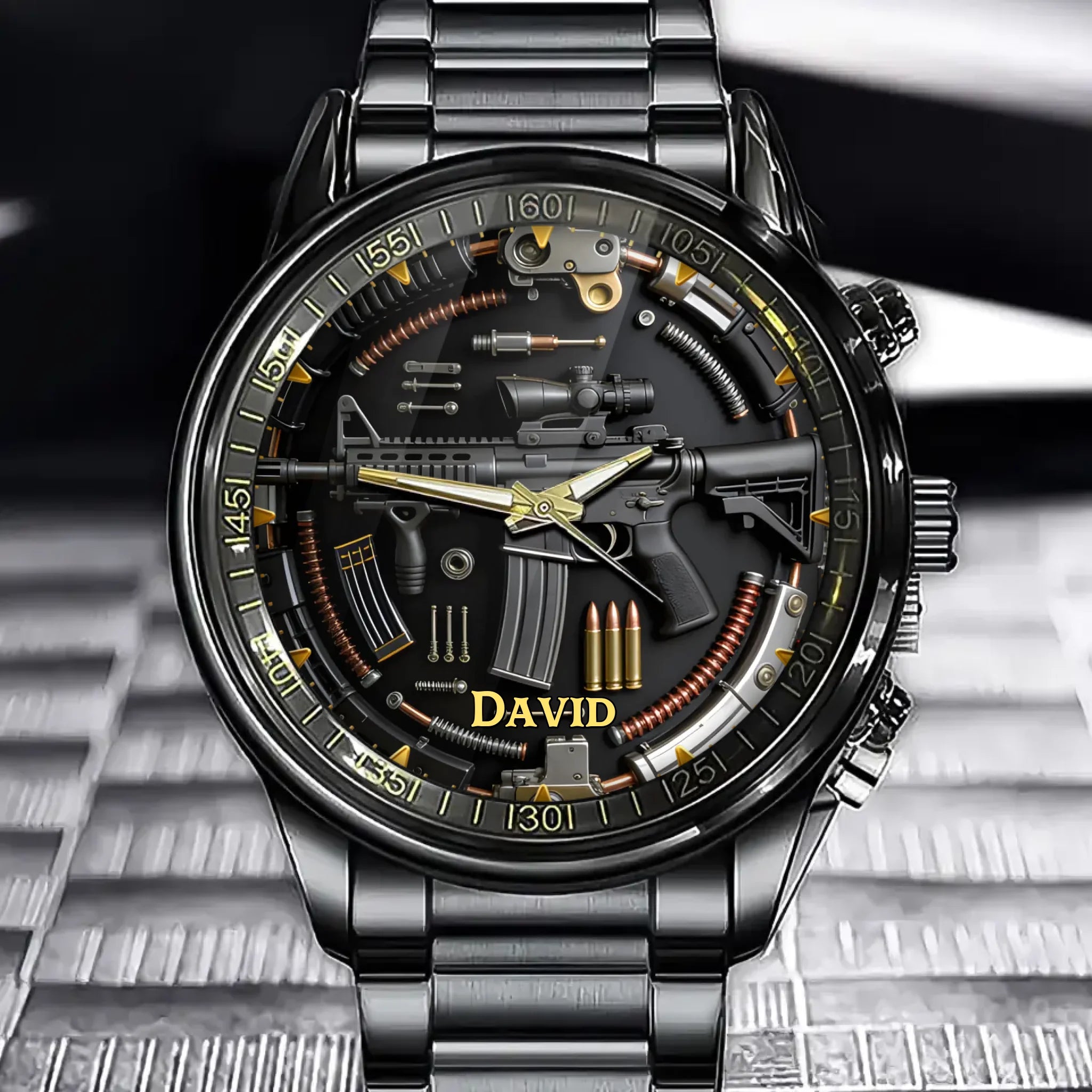 Personalized Gun Disassembly Diagram Themed Watch - Name Can Be Customized