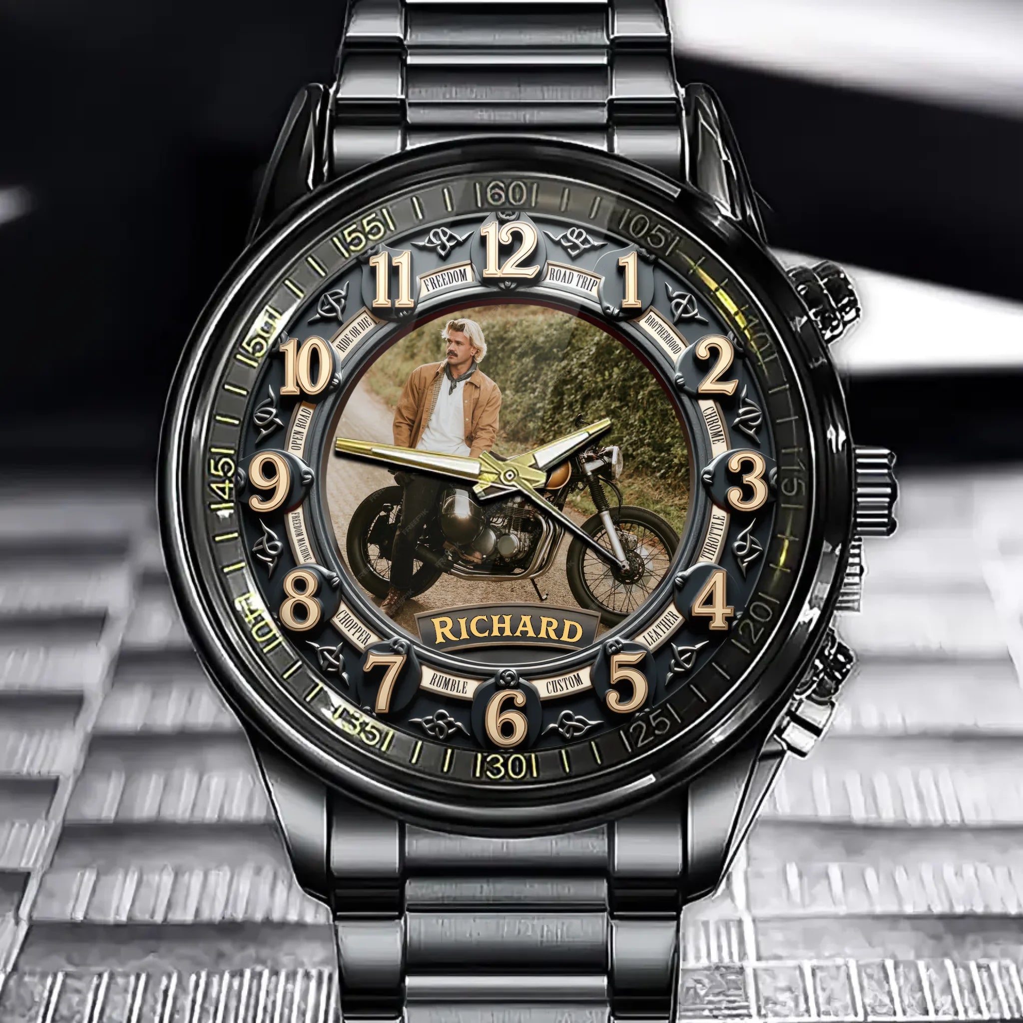 Personalized Motorcycle Rider Upload Photo Watch – Custom Photo Gift for Bikers