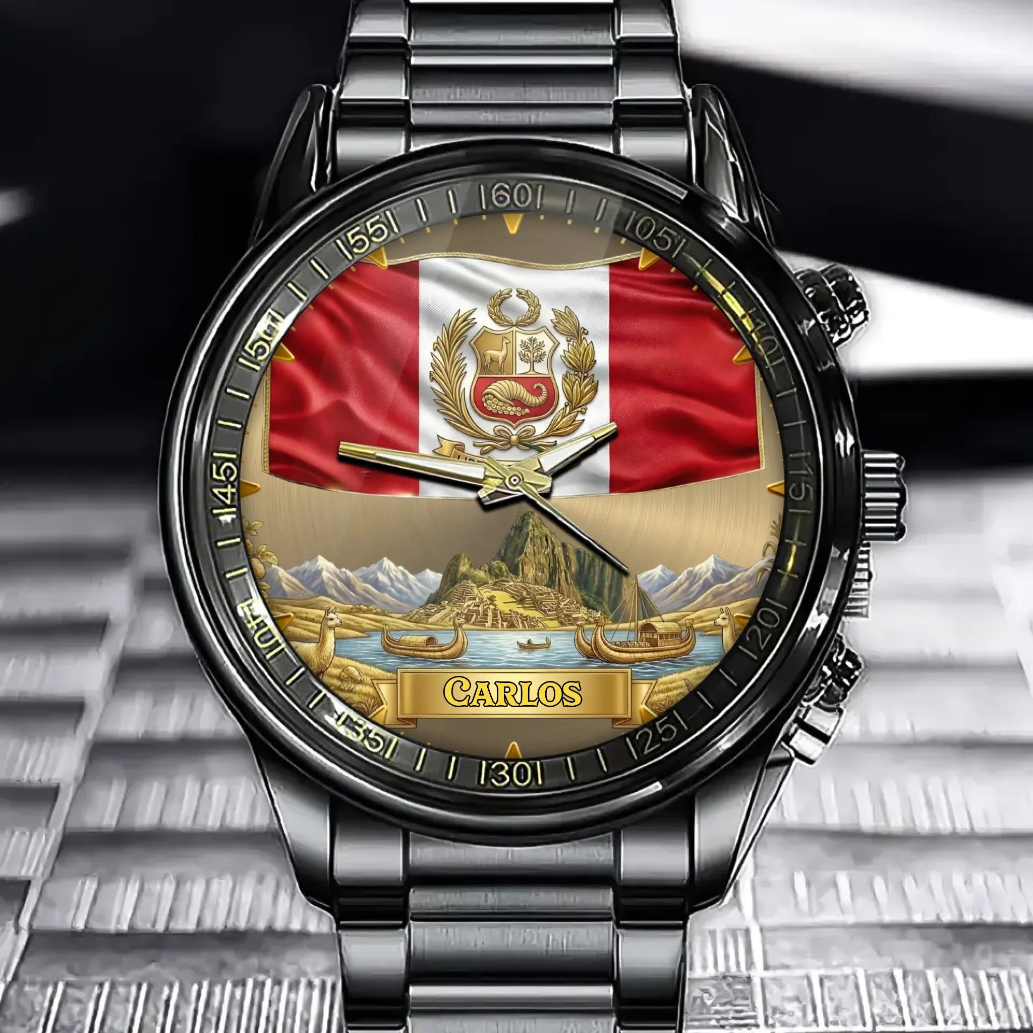 Personalized Peruvian Coat Of Arms Watch - Engravable National Pride