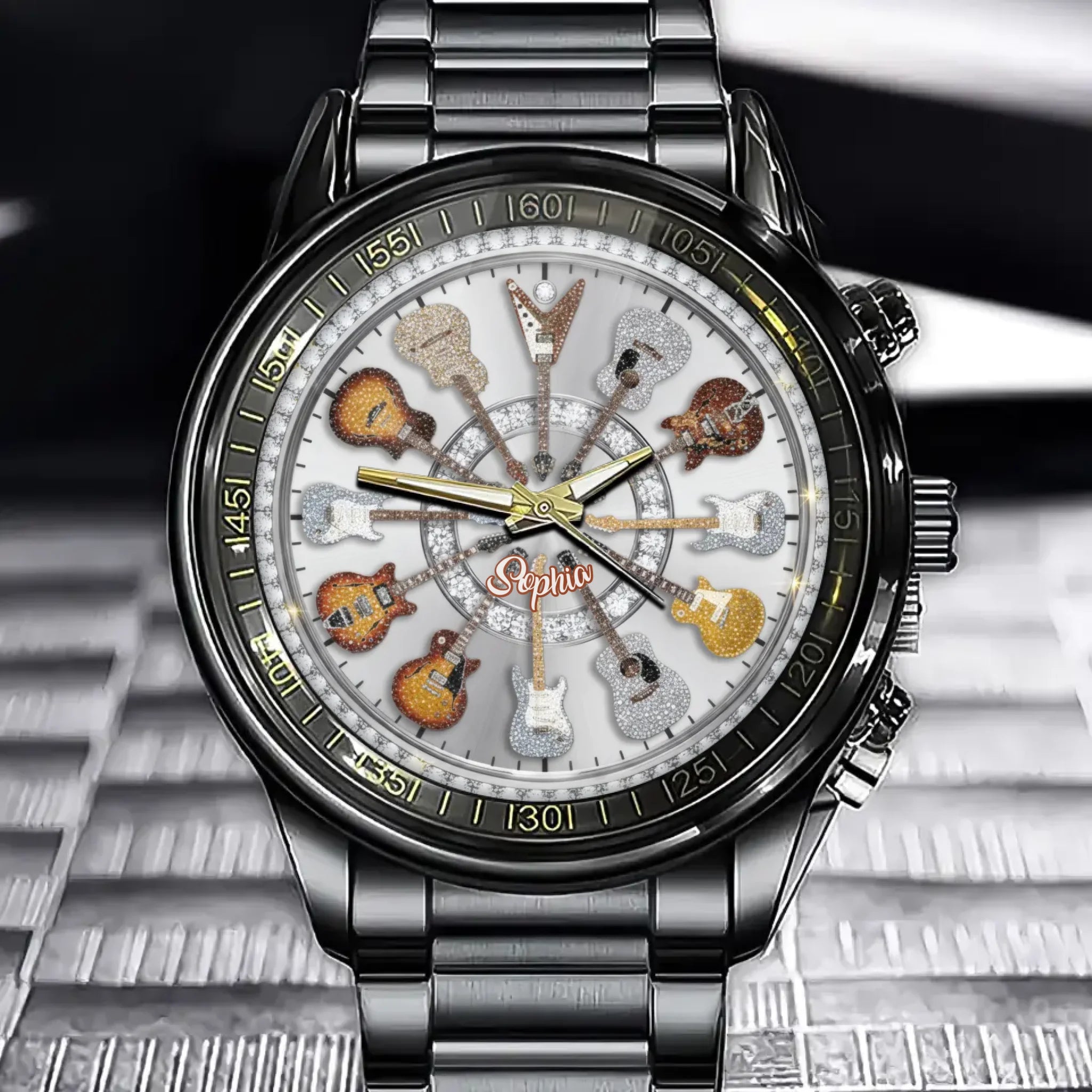 Personalized Rock Around the Clock Diamond Guitar Watch for Music Lovers