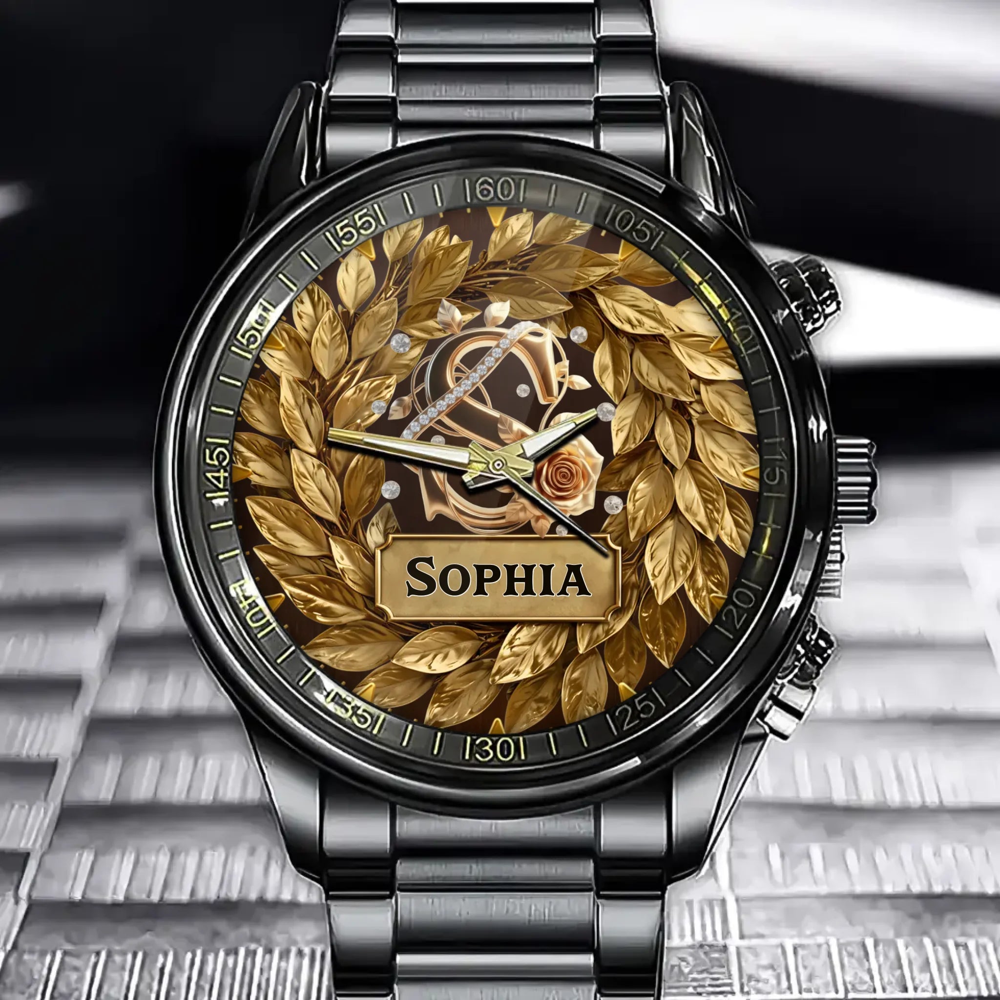 Personalized Wreath Women Watch - Custom Name & Initial Design