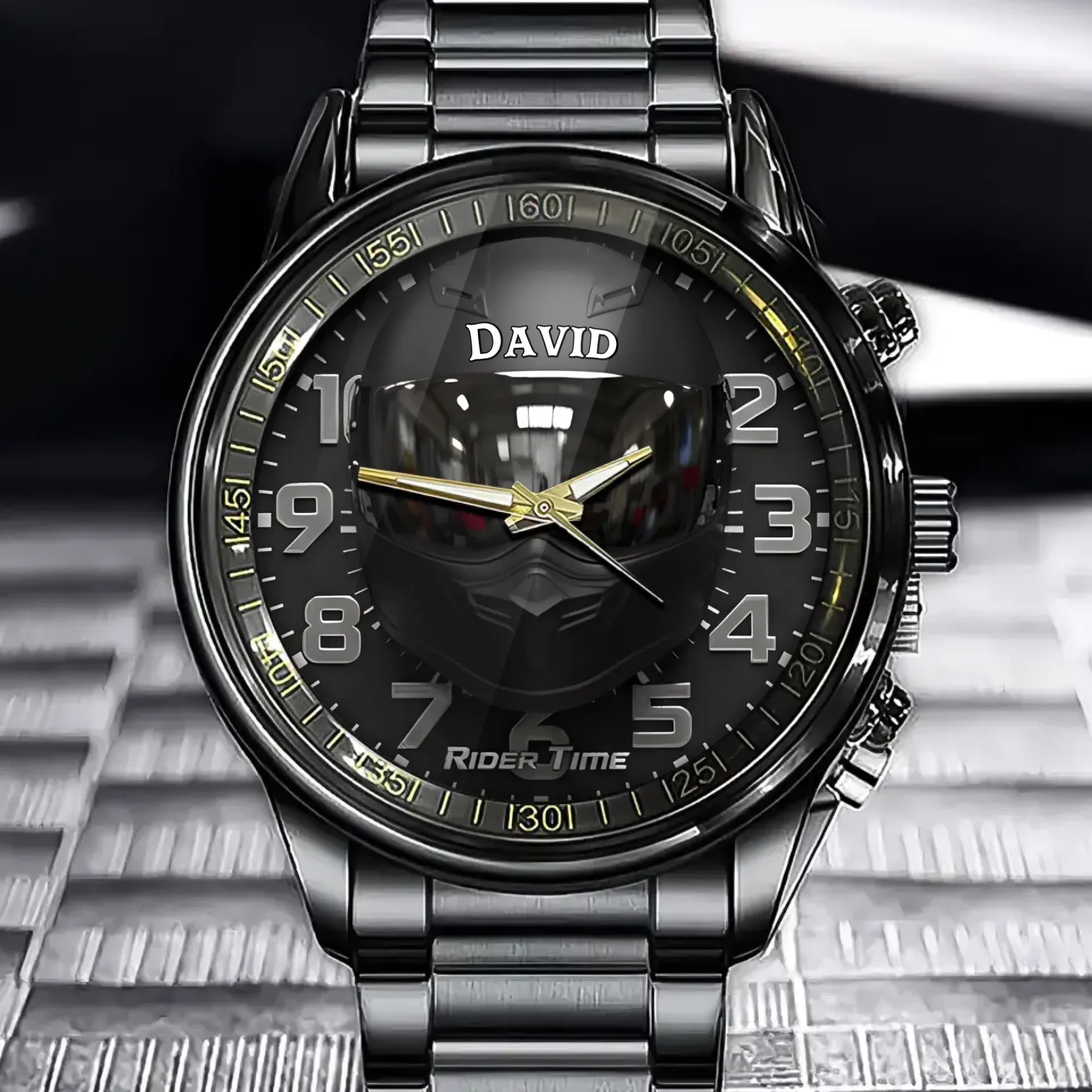 Personalized Biker-Themed Watch - Sleek Matte Black Design with Custom Name Option