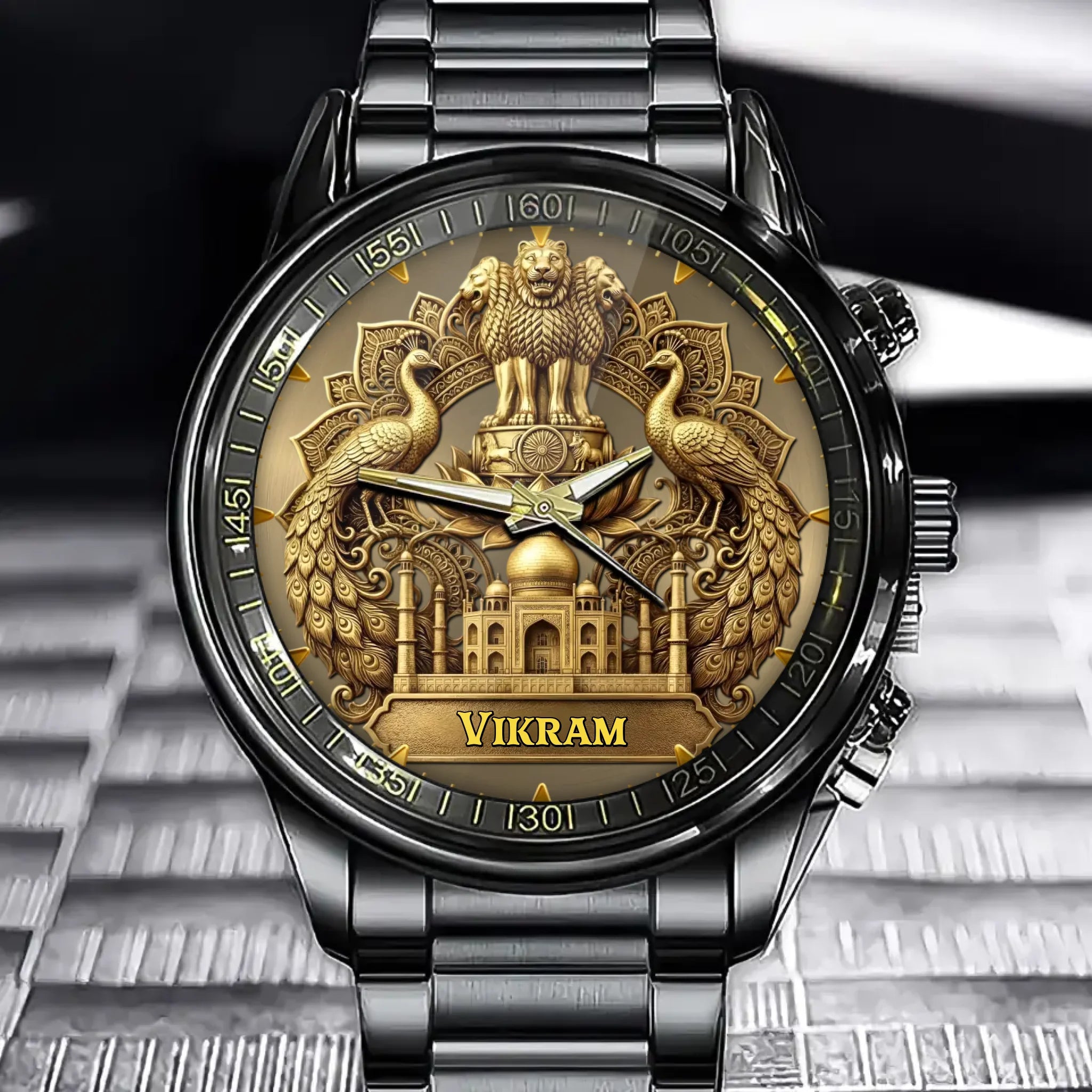 Personalized Indian Legacy Watch - Custom Name with Taj Mahal and National Symbols