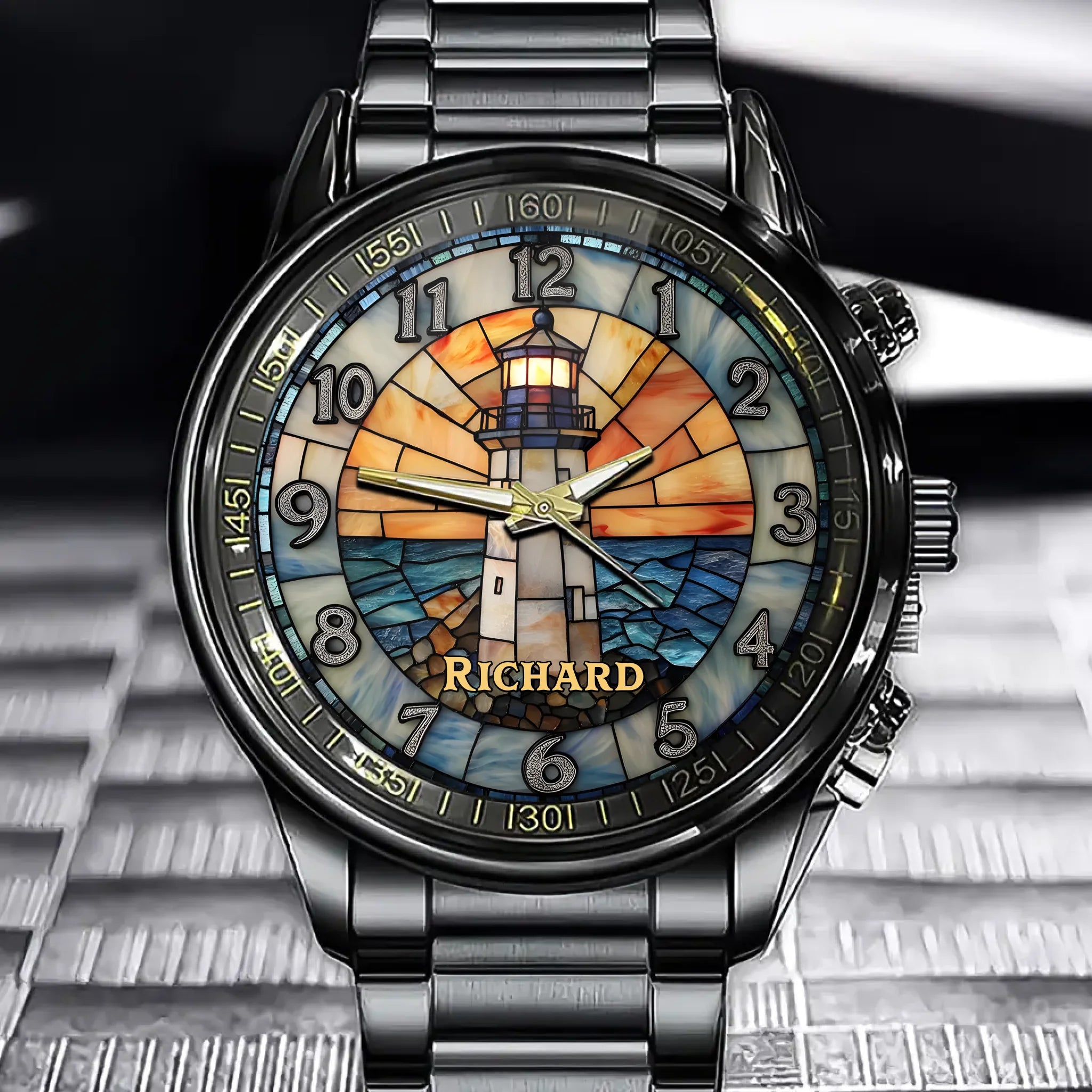 Personalized Lighthouse-Themed Watch Face with Custom Name
