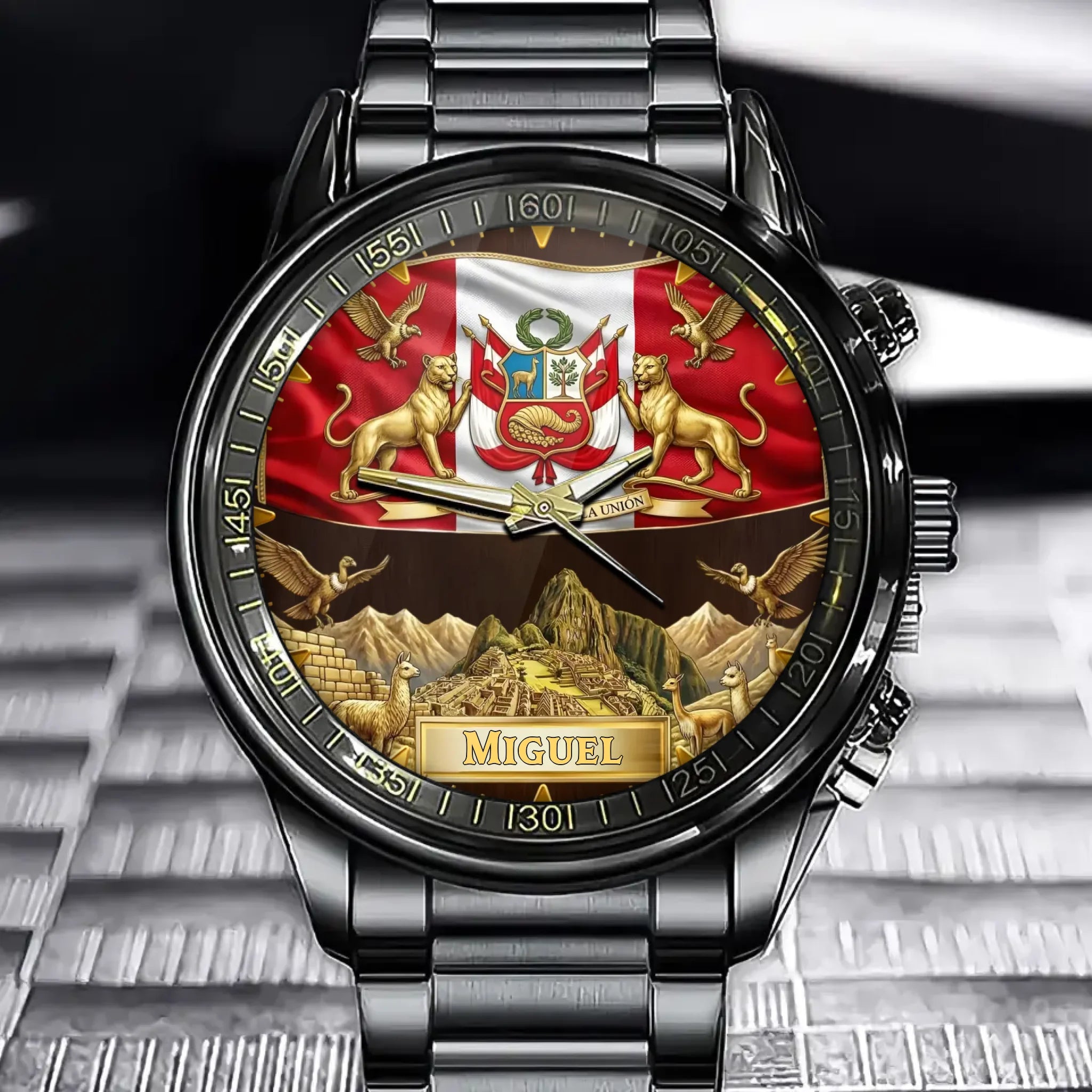 Personalized Peru Coat Of Arms Watch - Custom Engraving For National Pride