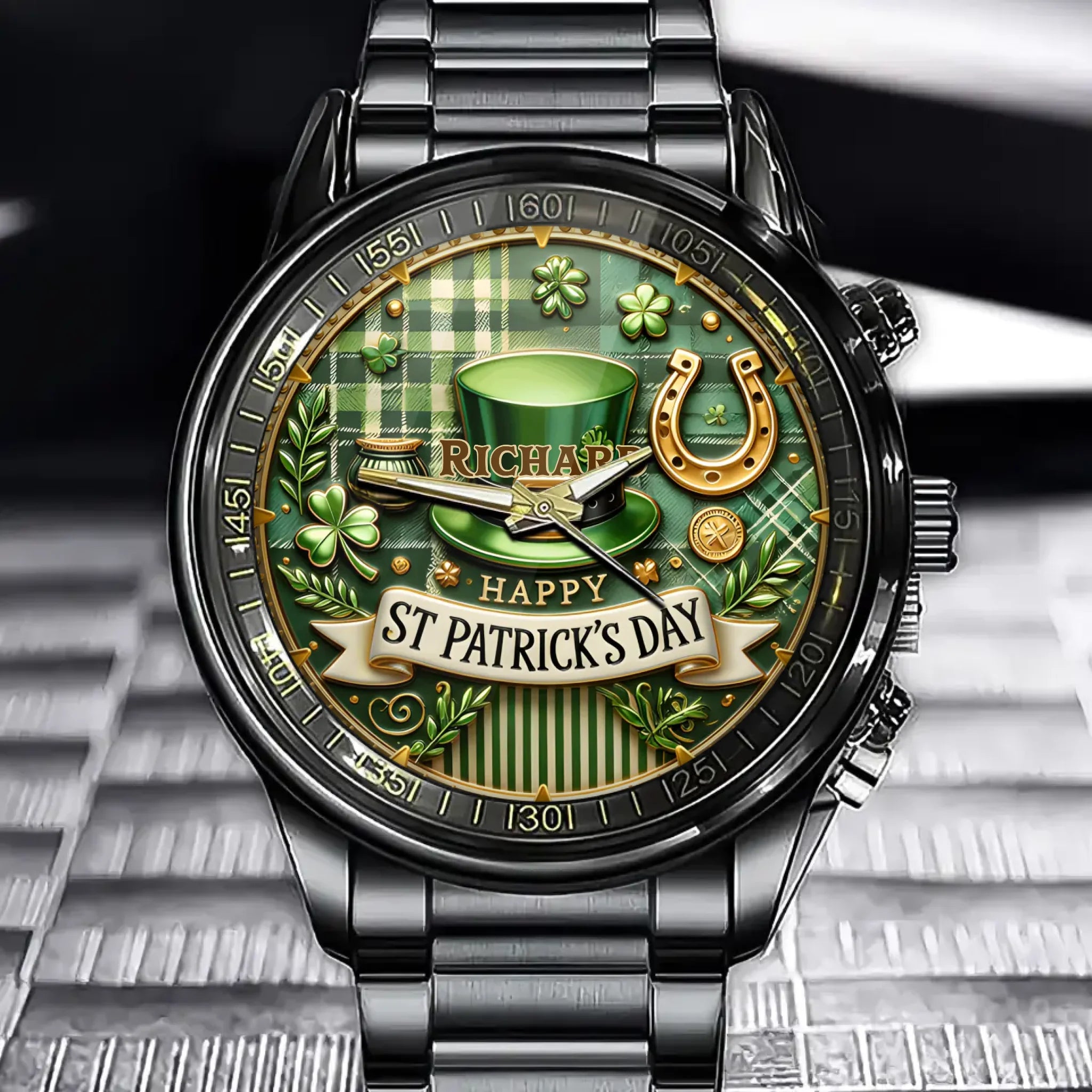 Personalized St. Patrick's Day Lucky Gift Watch Collection - Shamrock Detail with Custom Name